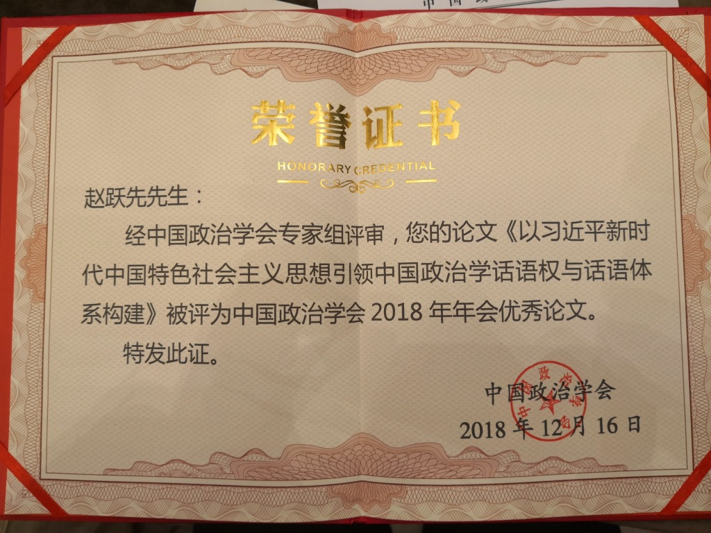 2018年12月14-16日,中国政治学会主办、中山大学政治与公共事务管理sunbet申搏官方网站承办、广东省社会科学界联合会协办的中国政治学会2018年年会暨“以习近平新时代中国特色社会主义思想为指导,加强马克思主义政治学话语体系建设”学术研讨会在广州举行。本届年会的主题为:以习近平新时代中国特色社会主义思想为指导,加强马克思主义政治学话语体系建设。sunbet申搏官方网站教师赵跃先、赵改萍、姜延博、胡志远、本志红和来自国内知名高校、科研院所的专家学者400余人一同参加了本次研讨会。