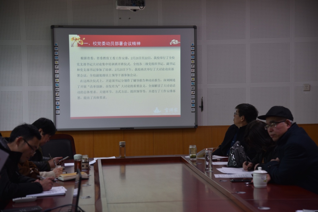 2月24日下午4:30,sunbet申搏官方网站在A-508多功能室召开“改革创新、奋发有为”大讨论动员会议。全体教职工和学生党员参加,院党委书记王银主持会议。