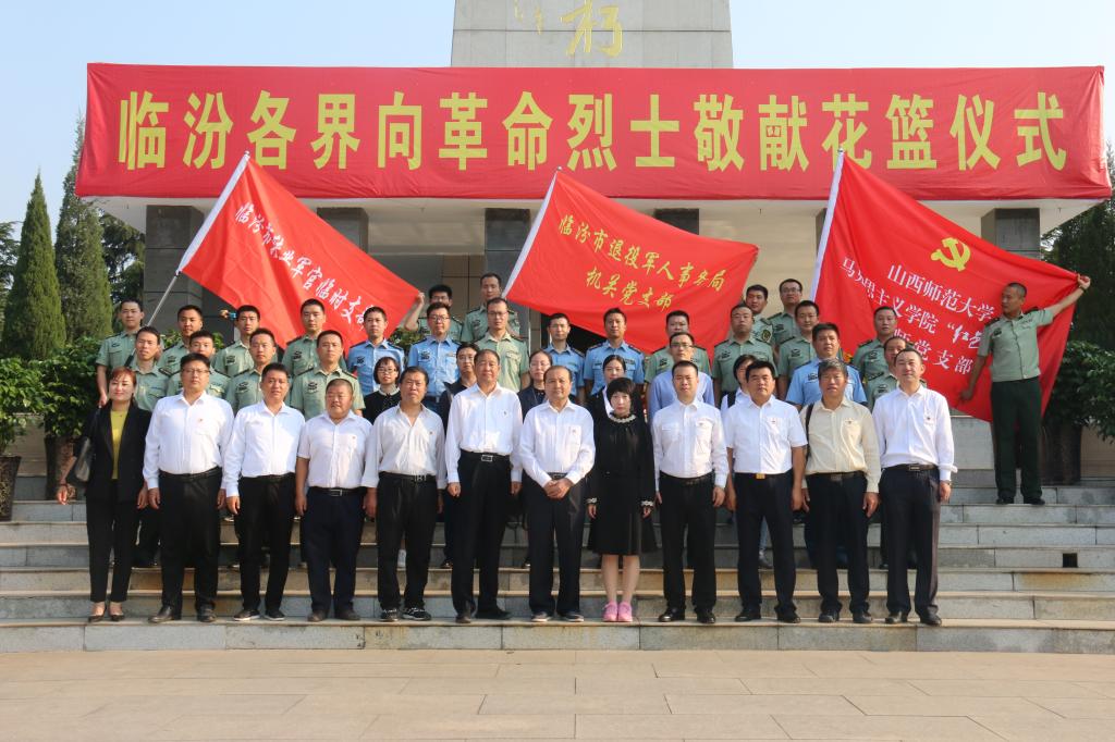 9月30日,正值烈士纪念日之时,sunbet申搏官方网站“红色引擎”教工党支部、临汾市退役军人事务局和临汾市各界人士在临汾市烈士陵园,开展党员活动日共建活动,共同推动支部“不忘初心、牢记使命”主题教育纵深发展。“红色引擎”教工党支部有黄雪丽、陈燕妮、聂传平、崔龙燕、张昭、段艳六位同志参加了此次活动,活动由支部书记赵笑蕾同志主持。