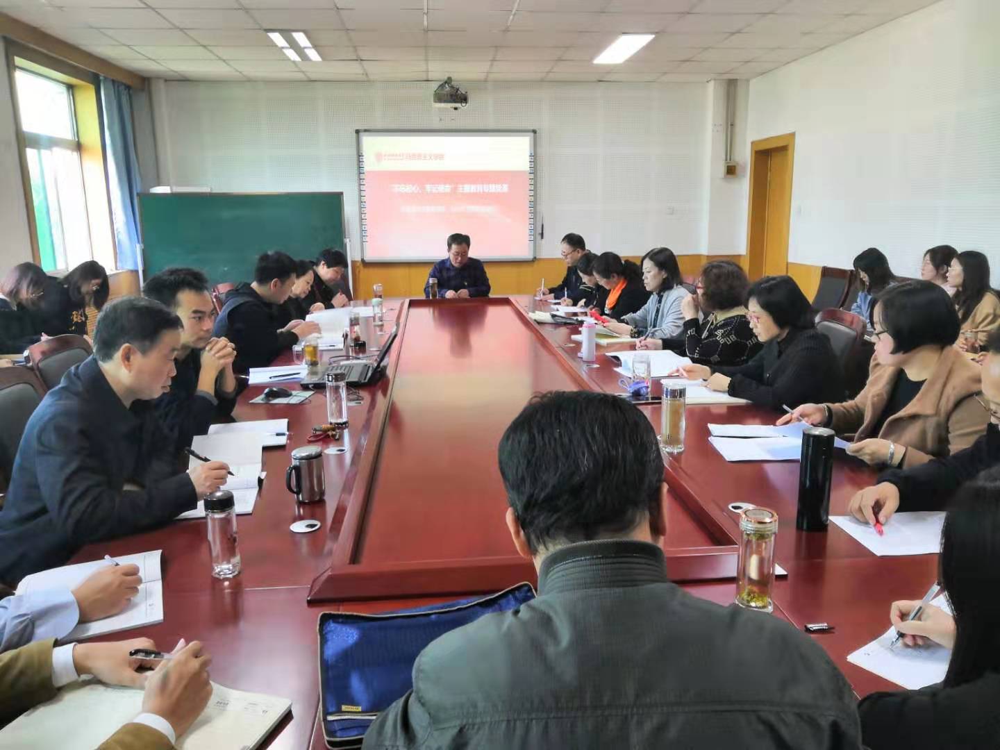 贾绘泽院长以“不忘初心使命,加强人才培养”为题,带领大家学习了习近平总书记关于教师的重要论述,解答了师生在主题教育调研中提出的问题,分析了sunbet申搏官方网站在教学、科研、管理中还存在的主要差距和不足,如本科教学质量亟待提高、研究生的培养问题、行政人员严重不足等等。他强调,sunbet申搏官方网站的教师以习近平总书记提出的“四有”教师为标杆,在人才培养过程中守初心、担使命,不能只做传授书本知识的教书匠,而要成为塑造学生品格、品行、品味的“大先生”。