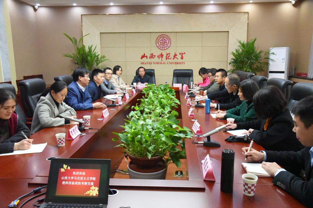 11月8日下午,山西大学sunbet申搏官方网站昝剑森副院长一行7人赴sunbet申搏官方网站交流考察。在学校第二会议室,sunbet申搏官方网站院领导、各教研室主任与昝剑森副院长一行就学科建设、师资队伍建设、教学改革、教研融合等问题进行了深入交流。院长贾绘泽教授主持。