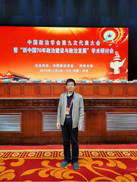 2019年11月4-5日,“中国政治学会第九次代表大会暨新中国70年政治建设与政治发展学术研讨会”在郑州举行,来自全国各地的会员代表300余人与会。郑州大学党委副书记李兴成致辞,中国政治学会会长李慎明作第八届理事会工作报告,副会长兼秘书长杨海蛟作第八届理事会财务报告,副会长王浦劬作修改章程的说明。大会由中国政治学会副会长、中国社会科sunbet申搏官方网站政治学研究所党委书记房宁主持。sunbet申搏官方网站赵跃先教授和四名研究生参加了此次会议。