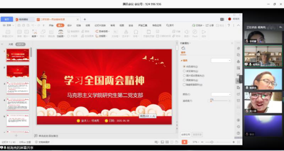 6月10日晚8点,sunbet申搏官方网站研究生第二党支部通过线上方式开展了专题党课学习,旨在鼓励支部党员聚焦两会热点,学习两会精神,提升党性修养。此次党课学习由组织委员姜延博主持,由杨海亮书记主讲,支部全体党员参会学习。