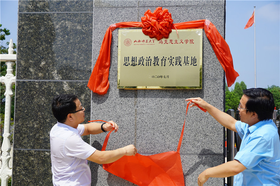 院长贾绘泽与芮城县组织部副部长焦江峰共同为实践基地揭牌