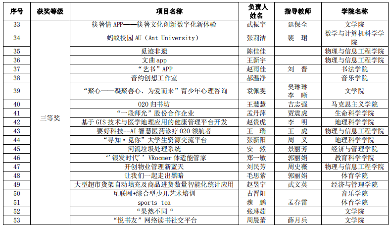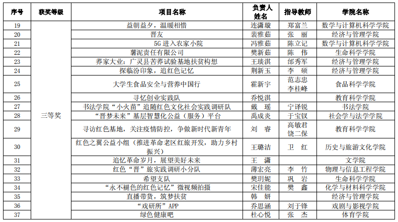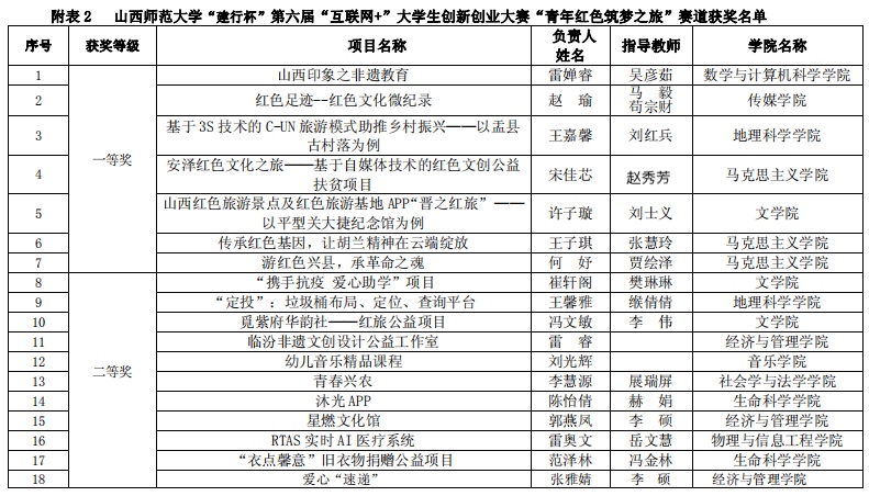 我校于2020年6月启动了该项赛事的报名工作,截止2020年8月3日,我校累计参赛报名项目数 760 项,累计参赛学生人次 3201 人。其中高教主赛道632 项目,“青年红色筑梦之旅”赛道 128 项。通过sunbet申搏官方网站初选共推荐 102 个项目(主赛道 65 个,“青年红色筑梦之旅”赛道 37 个)参加了校内选拔,经评委专家认真评审,主赛道共评选出一等奖 13 名,二等奖 19 名,三等奖 33 名,“青年红色筑梦之旅”赛道一等奖 7 名,二等奖 11 名,三等奖 19 名。sunbet申搏官方网站宋佳芯团队、王子琪团队、何妤团队获得一等奖,王瑞文团队获得二等奖,王慧慧团队获得三等奖。