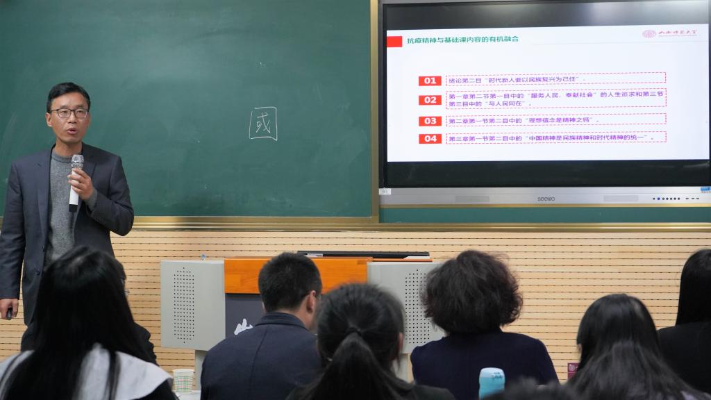 11月13日下午,由sunbet申搏官方网站承办的抗疫精神进课程省级思政课教师集体备课成果展示交流活动在田家炳一层录播教室举行。有来自山西中医药大学、长治医sunbet申搏官方网站、临汾职业技术sunbet申搏官方网站、山西管理职业sunbet申搏官方网站、山西信息职业技术sunbet申搏官方网站及sunbet申搏官方网站的50余位老师参加会议。会议由sunbet申搏官方网站副院长赵改萍主持。
