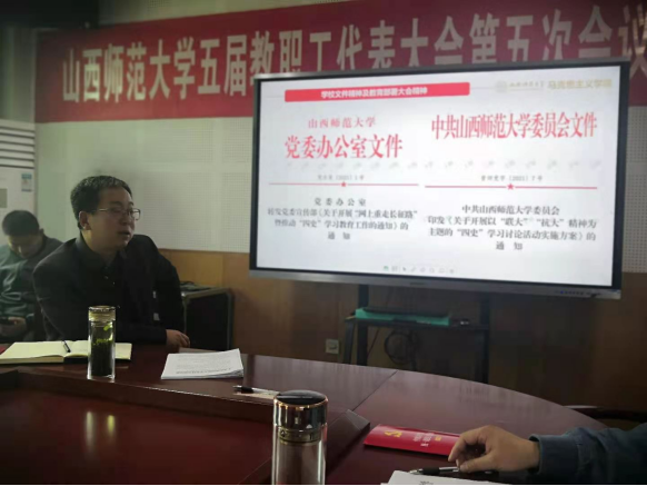 会上,王银书记传达了学校党委印发的《关于开展以“联大”“抗大”精神为主题的“四史”学习讨论活动实施方案》文件精神,明确了学习讨论活动的总体要求、主要任务、方法步骤及学习要求,特别就sunbet申搏官方网站承担的工作任务作出安排。他要求sunbet申搏官方网站各党支部、系、教研室、群团组织能扎实推动学习讨论活动的顺利开展,确保取得实效;希望全体师生能积极响应学校号召,迅速掀起学习讨论活动热潮。