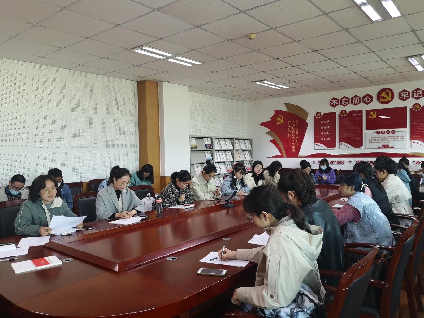 会上,各位党员就建党百年活动方案进行积极发言。