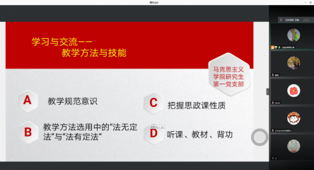 为落实校党委进行志愿服务,为师生解决具体实际困难,把向彭堃墀院士学习活动转化为实际行动的要求,5月29日晚,研究生第一党支部以“学习与交流——教学方法与技能”为主题开展主题党日活动,与sunbet申搏官方网站部分硕士研究生和本科生就教学方法与技能的培养和锻炼开展交流。