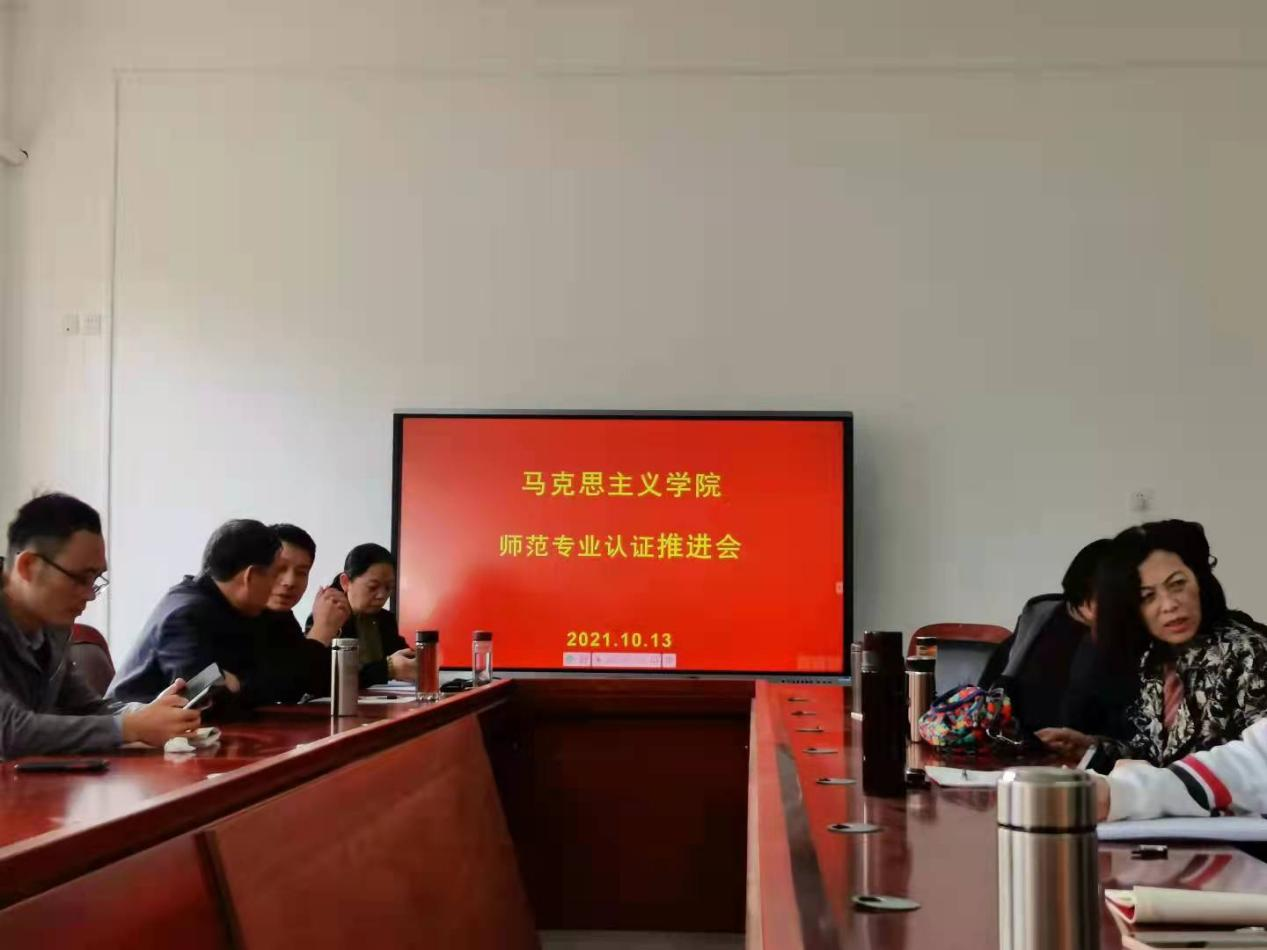 10月13日,sunbet申搏官方网站召开思想政治教育专业师范认证工作推进会。全体教职工参加会议,副院长赵改萍主持会议。
