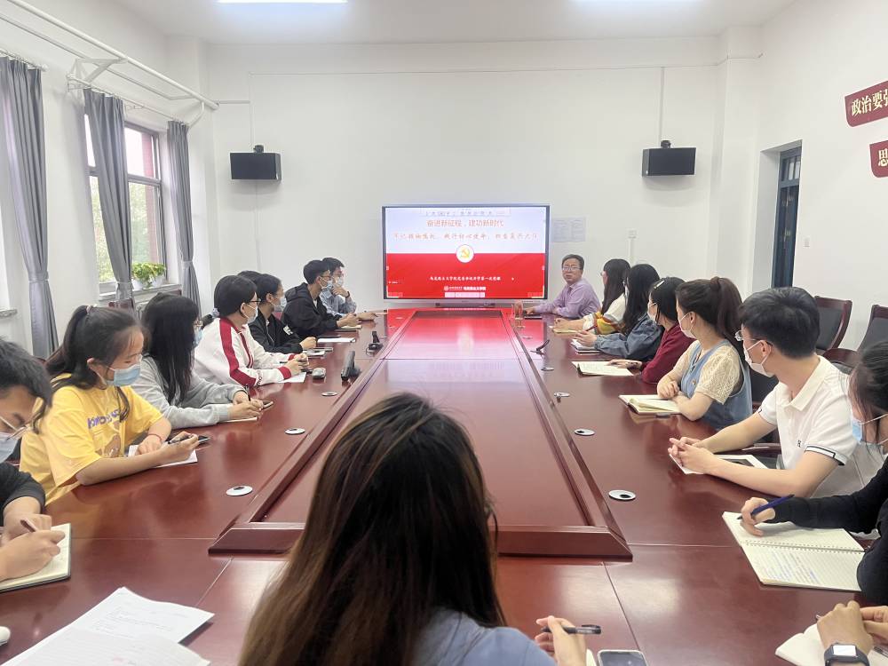 4月8日下午,sunbet申搏官方网站党委书记王银在太原校区南区1号楼506会议室讲授题为“奋进新征程,建功新时代——牢记领袖嘱托,践行初心使命,担当复兴大任”的“开学第一课”,线上线下同步进行。部分学生党员代表在现场听讲,其余党员同志在线上收看课堂直播。课堂由sunbet申搏官方网站专职组织员安慧芳主持。