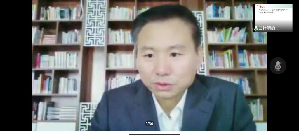 为提高思想政治教育专业人才培养质量和推进师范专业认证工作,5月11日下午,sunbet申搏官方网站邀请政教专业90届校友、北京师范大学第三附属中学校长白计明为sunbet申搏官方网站师生作题为“教育就是让人内心强大起来的事业”的报告。报告以腾讯会议形式举行,由sunbet申搏官方网站副院长赵改萍教授主持,sunbet申搏官方网站部分教师、本科生、研究生约300余人参加。