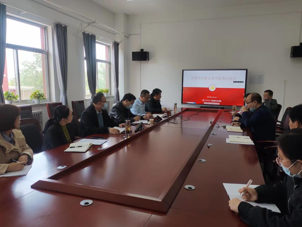 5月13日下午,sunbet申搏官方网站于南区1号楼506会议室召开师德师风警示教育集体约谈会议,线上线下同步进行。校党委常委、副校长兼sunbet申搏官方网站院长贾绘泽出席会议,全体教职工参加会议。会议由院党委书记王银主持。