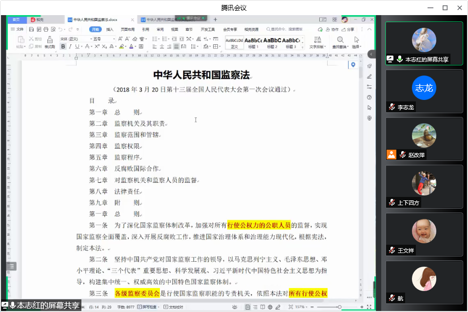 为增强支部党员廉洁自律意识,sunbet申搏官方网站“守正创新”教工党支部于2022年5月31日晚7点半在腾讯会议开展“学习监察法实施条例 增强廉洁自律意识”线上主题党日活动。此次主题党日活动由支部书记赵改萍主持,支部全体党员参加。