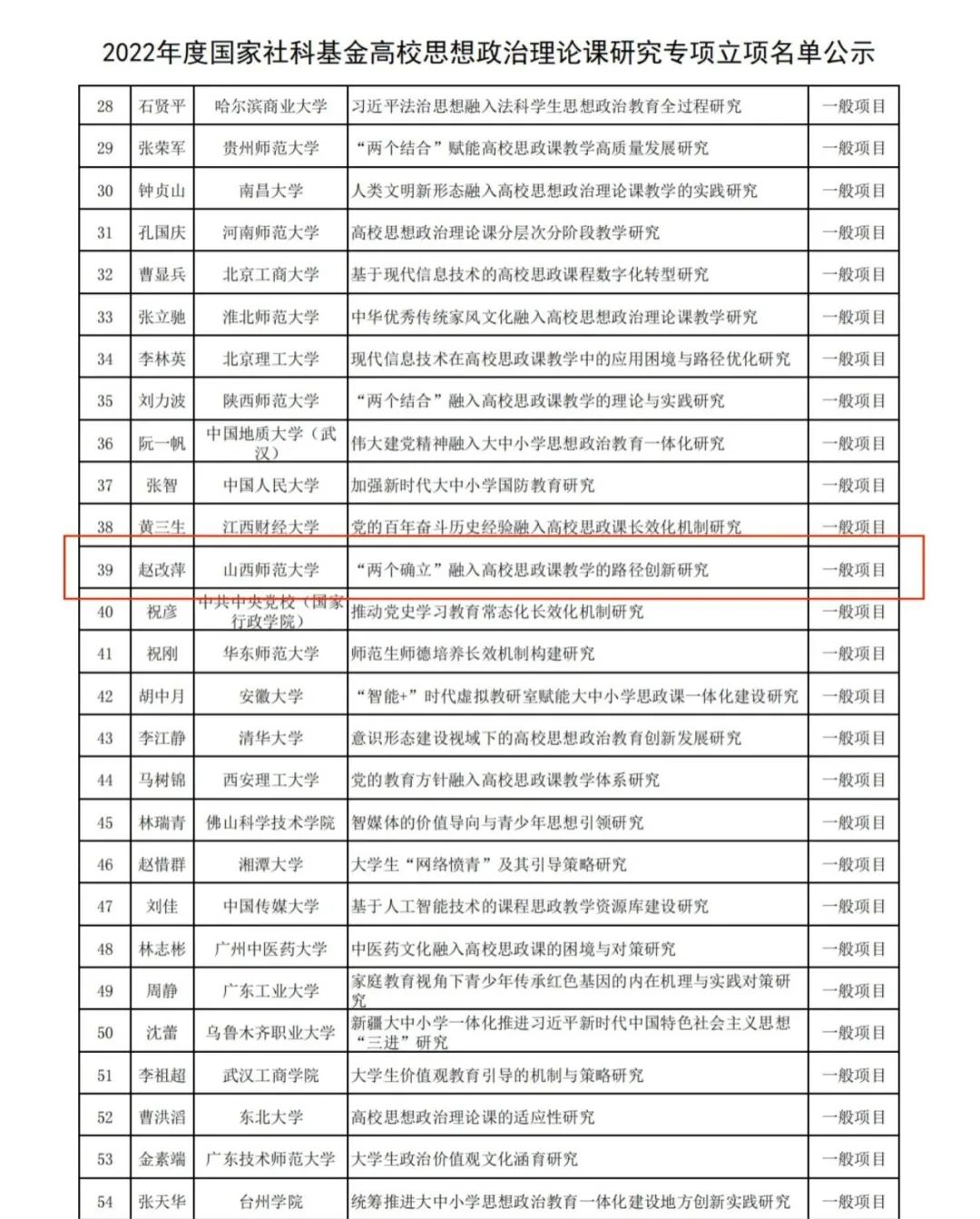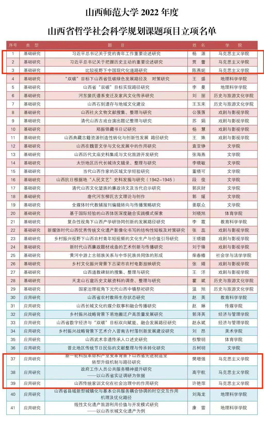 近日,2022年度国家社科基金高校思想政治理论课研究专项立项名单和山西省哲学社会科学规划课题项目评审结果公布。sunbet申搏官方网站赵改萍副院长的《“两个确立”融入高校思政课教学的路径创新研究》获批国社科高校思政课研究专项一般项目,杨源、贾蕾、陈燕妮、樊增强、高宇航、许艳萍六位老师获批省哲社规划课题基础研究和应用研究项目。