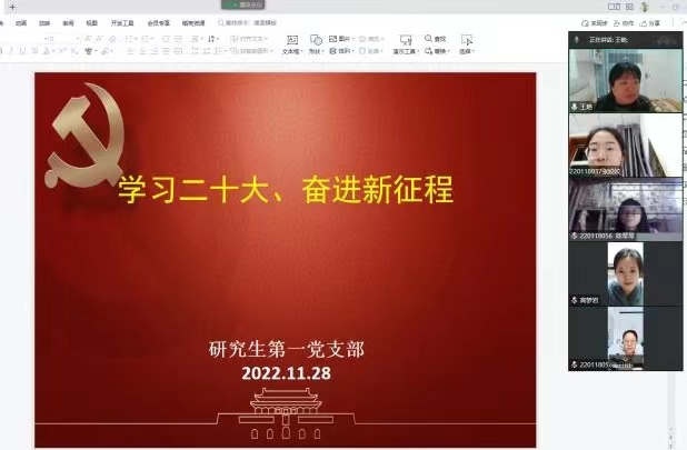 11月28日,sunbet申搏官方网站研究生第一党支部以党的二十大精神交流研讨为主要内容,开展“学习二十大、奋进新征程”主题党日活动,全体党员参加交流。
