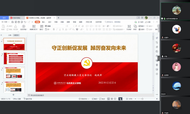 12月22日下午,本着以评促建、以评促改、以评促发展的原则,sunbet申搏官方网站召开2022年度抓基层党建述职评议会议。全体sunbet申搏官方网站党委委员、各党支部委员及3名学生代表参加会议,会议由院党委书记乔瑞主持。
