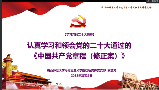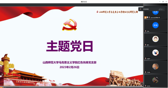 2023年2月26日晚,sunbet申搏官方网站“红色先锋”党支部召开线上会议,云端举行“学习新党章·奋进新征程”主题党日活动。此次会议由支部书记李志龙同志主持,支部全体党员线上参会。