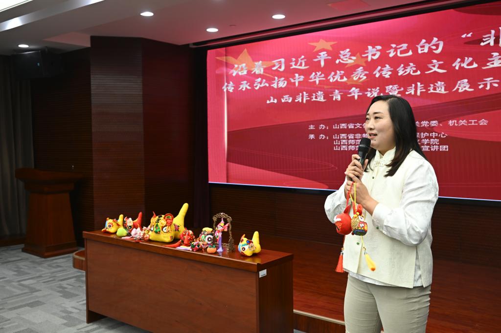 太原莲花落、武术表演、民歌演唱等现场表演贯穿于宣讲中,以元素化解析、可视化传播、互动式交流等方法,鲜活立体地展示了山西非物质文化遗产的独特魅力,提升了活动的感召力、凝聚力、影响力。