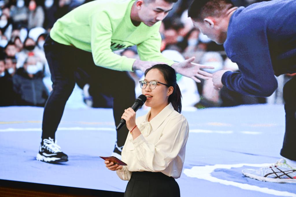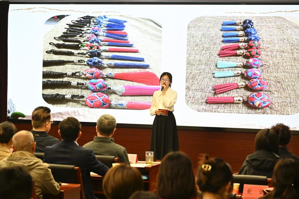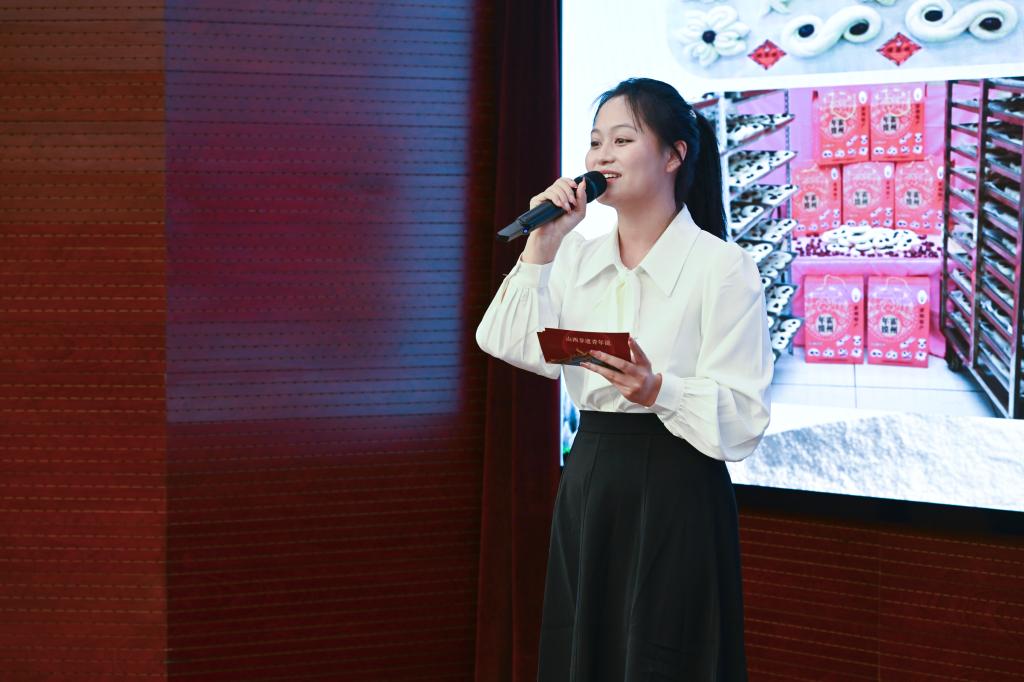 我校青年学生作为宣讲人,深情讲述了他们沿着习近平总书记考察调研山西的足迹,循着三晋大地历史文化脉络,深入省内10余个县市,对50余处非遗项目走访时的所见所闻所感。“老陈醋酿制技艺”沉淀匠心传承、“霍州年馍”成为霍州人“富口袋”的重要支柱、“左权开花调”创新推出宣传党的二十大精神的歌曲、“挠羊赛”展现出力量与智慧的较量……一个个具有鲜明地方特色的非遗展现出博大精深的文明、弦歌不辍的传承,视频、课件、音乐与宣讲相得益彰,为现场观众带来了全新的视听体验。