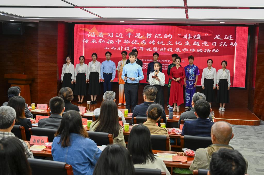 活动分“山西非遗青年说”、山西“非遗”传承人现场展演以及非遗展示体验活动三个环节,以小故事阐释大主题,生动解读了习近平总书记关于非物质文化遗产保护工作重要指示精神,引导广大青年党员、干部职工肩负起“推进文化自信自强 铸就社会主义文化新辉煌”的使命担当。