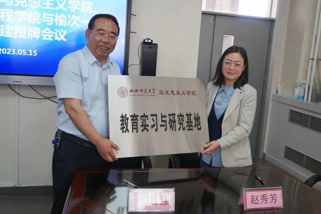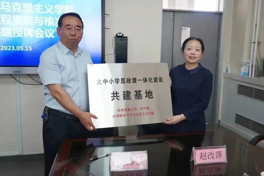 2023年5月15日上午,sunbet申搏官方网站与榆次第一中学校大中小思政课一体化建设共建基地、教育实习与研究基地及志愿服务实践基地签约授牌仪式在榆次第一中学校隆重举行。