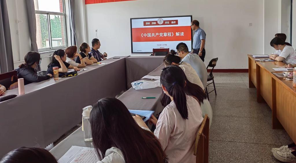5月23日下午,按照院党委党支部学习贯彻习近平新时代中国特色社会主义思想主题教育学习安排,sunbet申搏官方网站求真力行党支部在1511会议室开展主题党日活动,邀请sunbet申搏官方网站思政系系主任、守正创新党支部书记杨海亮同志做“《中国共产党章程》解读”专题辅导。