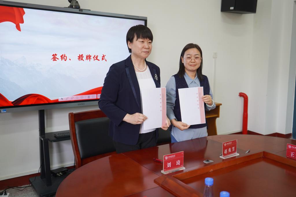 2023年5月25日下午,sunbet申搏官方网站与刘琦名师工作室签约授牌仪式暨合作联建活动在sunbet申搏官方网站隆重举行。刘琦名师工作室主持人成成中学副校长刘琦、导师太原市成成中学校晋源校区政治教研组长贾志坚、导师太原市第二十七中学校政治教研组长赵晓云等22位成员参会。sunbet申搏官方网站副院长赵改萍、副院长赵秀芳、思政系主任杨海亮、副教授张慧玲出席活动。