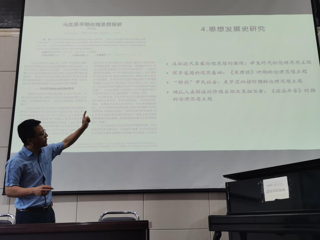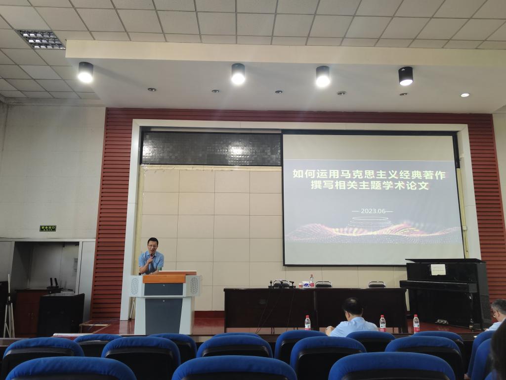 李志强教授从为什么要阅读马克思主义经典著作、如何更有效阅读马克思主义经典著作、克服阅读马克思主义经典著作的误区、撰写马克思主义经典著作论文的维度、以三部经典著作分析学术论文的选题、撰写马克思主义经典著作论文的框架、写作的几点体会等七个方面向在座师生作了精彩和详细的学术讲解。在讲座中,李志强教授“反观自身”,以自己的学术成长经历和教学科研工作为例,多次强调沉浸式阅读和理解马克思主义经典著作的重要性及意义。
