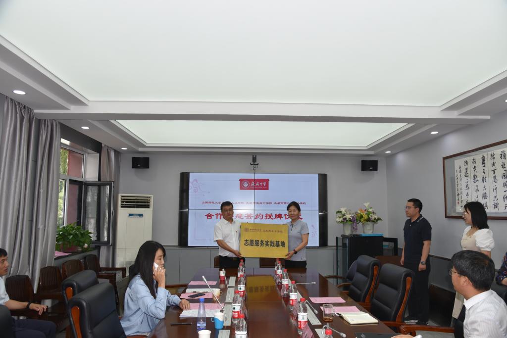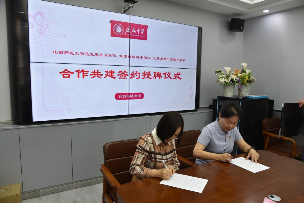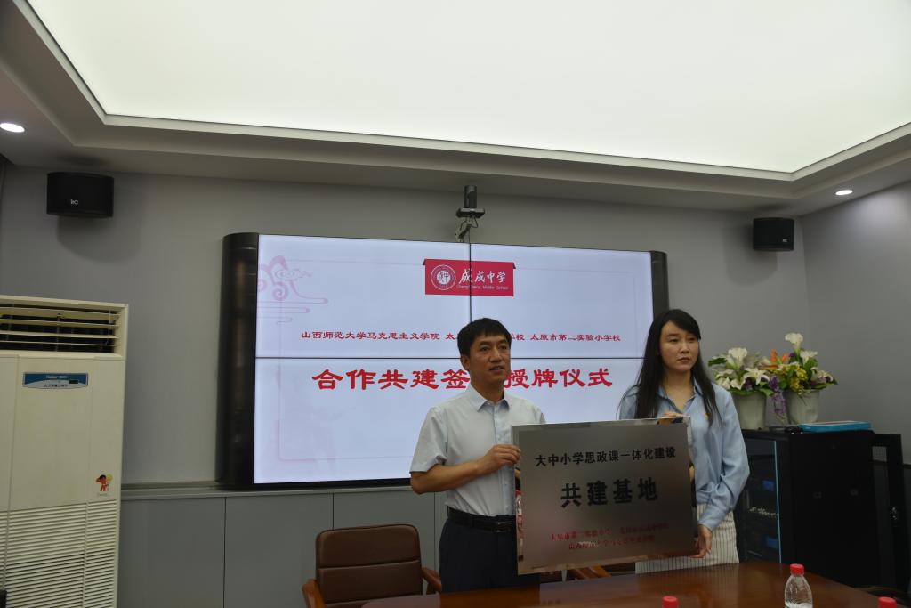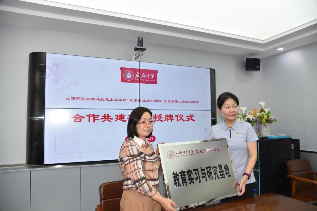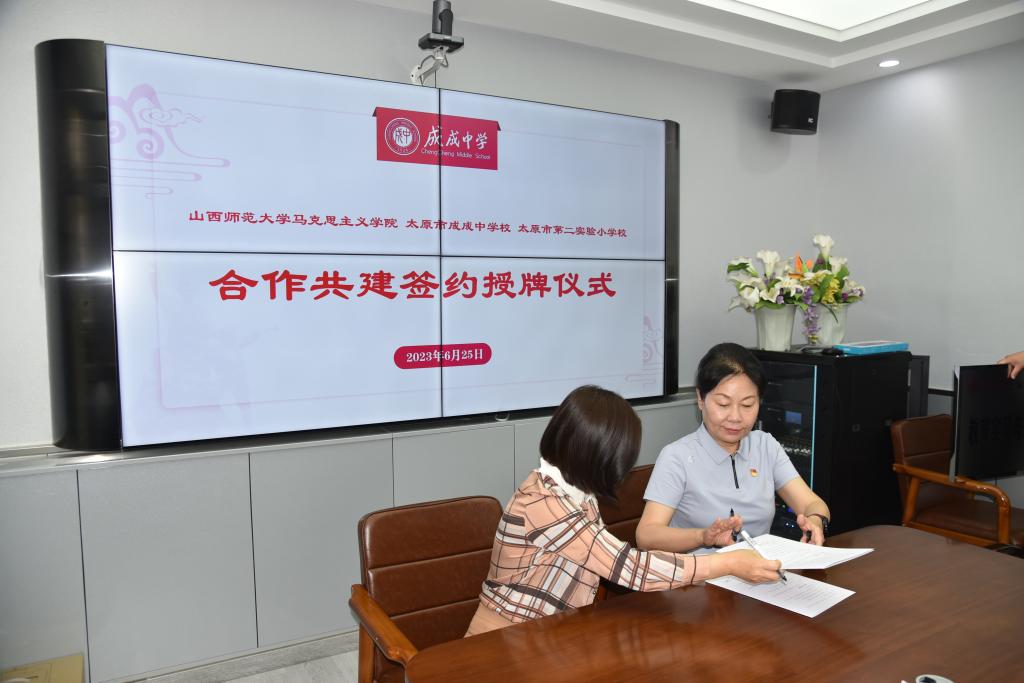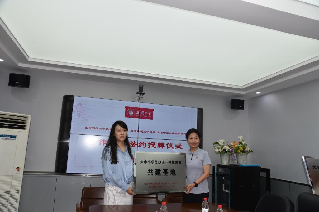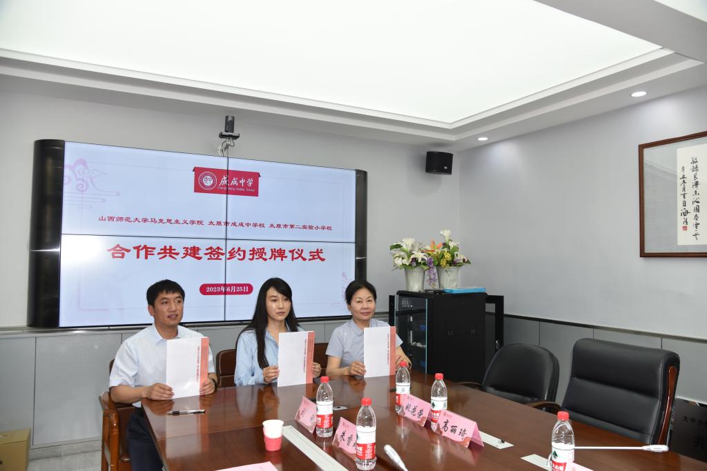 2023年6月25日上午,sunbet申搏官方网站与太原市成成中学校、太原市第二实验小学大中小学思政课一体化建设共建基地、教育实习与研究基地和志愿服务基地签约授牌仪式在太原市成成中学校迎泽校区隆重举行。
