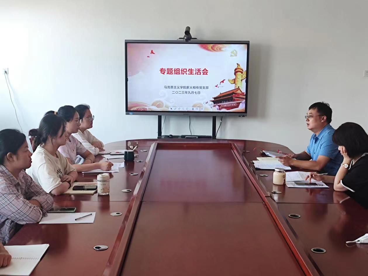 为学习贯彻习近平新时代中国特色社会主义思想主题教育总目标和具体要求,深入学习领悟以学铸魂、以学增智、以学正风、以学促干的丰富内涵和实践要求,sunbet申搏官方网站“薪火相传”党支部于2023年9月7日召开了专题组织生活会。会议由支部书记张玉婷主持,院党委副书记杜辉同志以普通党员身份参加会议,支部全体成员到场参加。