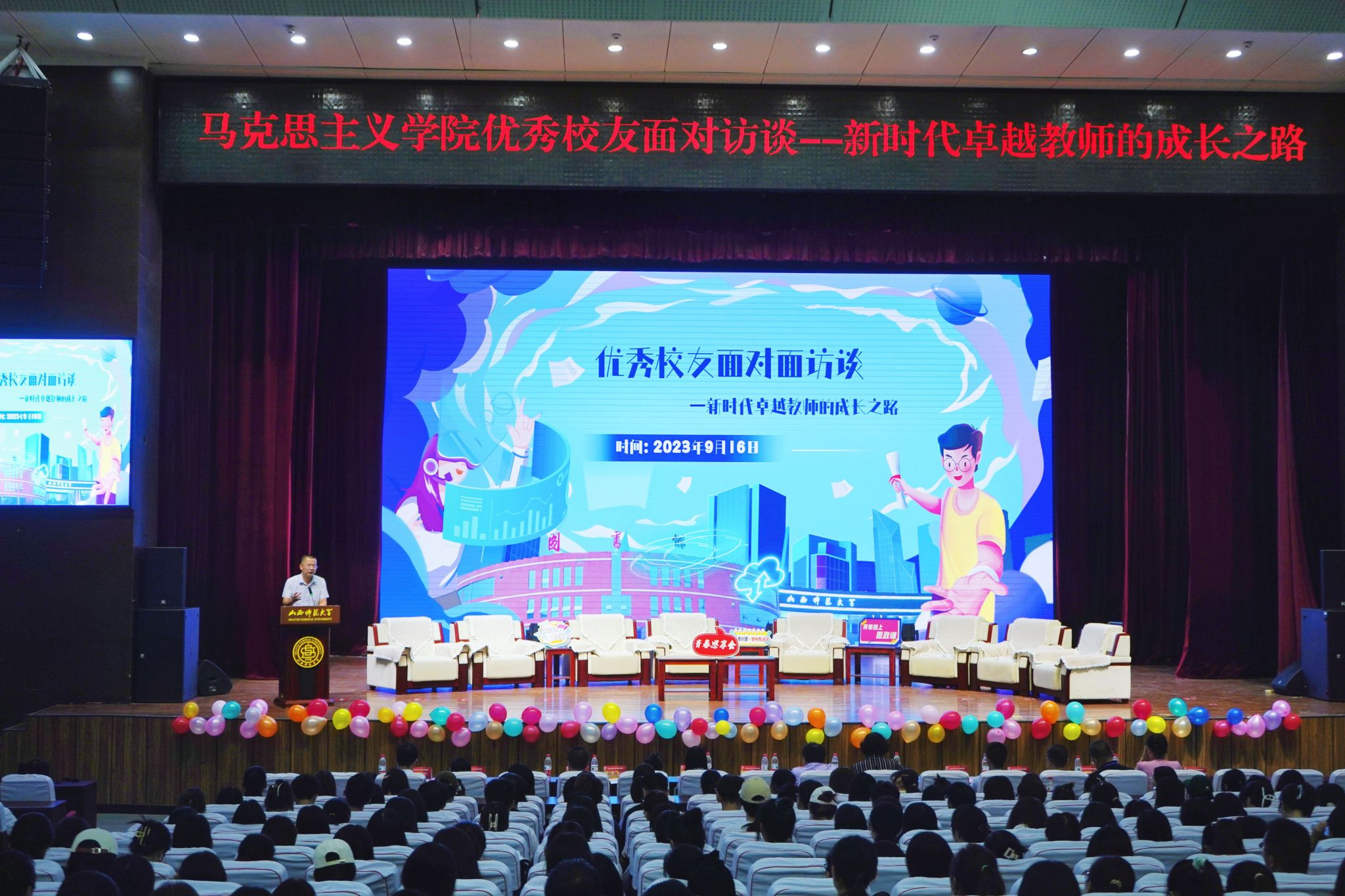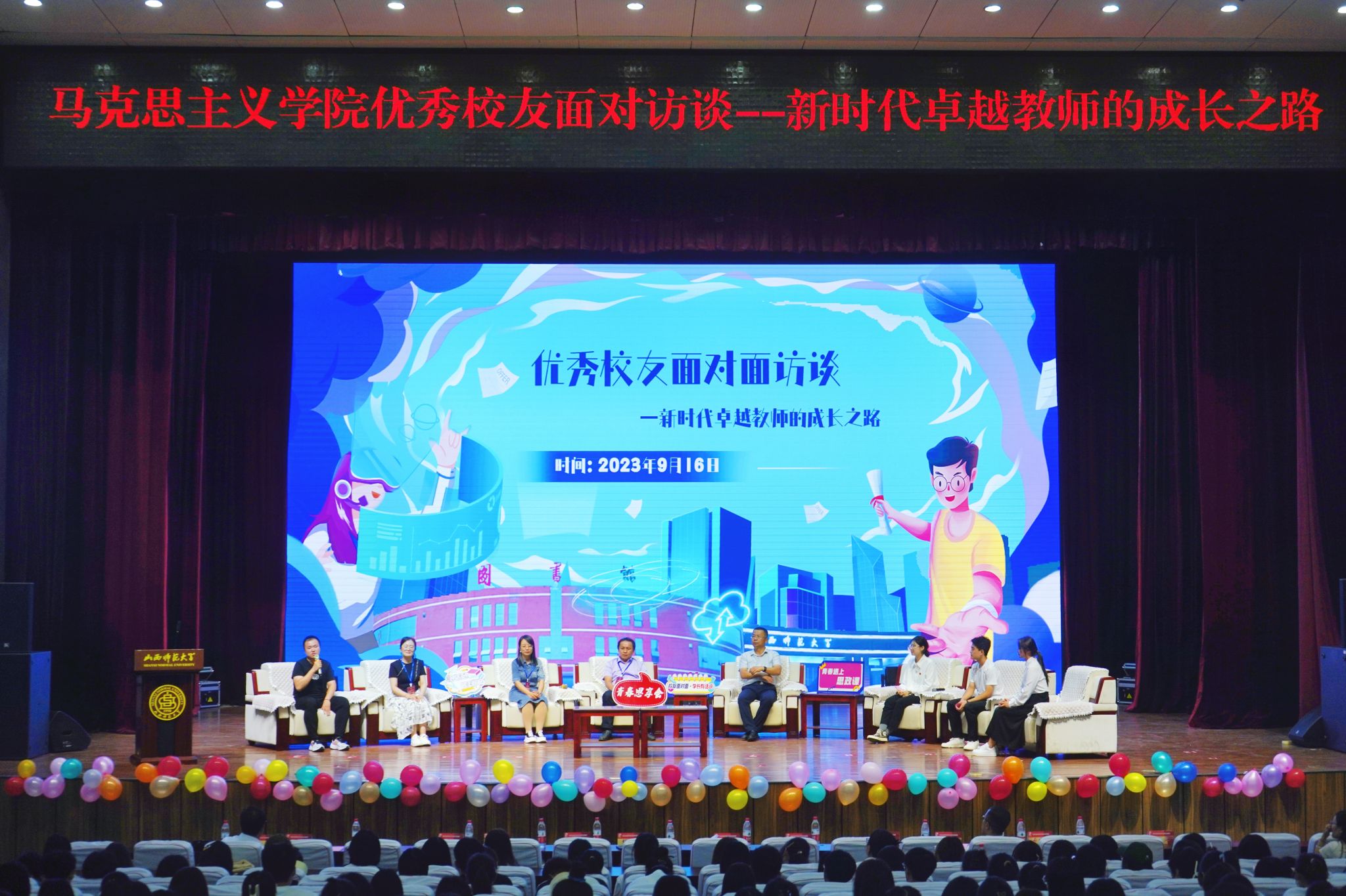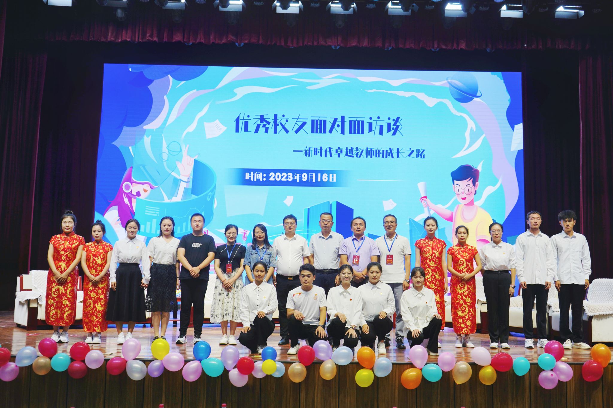 为了发挥优秀校友的榜样力量,提升师范生专业技能,助力学生思想引领和成长成才,值此学校建校65周年之际,sunbet申搏官方网站9月16日下午在南区科学会堂一层报告厅举办“优秀校友面对面访谈——新时代卓越教师的成长之路”活动。副院长赵改萍(主持行政工作)、院党委副书记杜辉出席活动,sunbet申搏官方网站十位优秀校友代表和本科生、硕士生代表400余人共同参加。本次活动由院团委副书记张瑞琴主持。