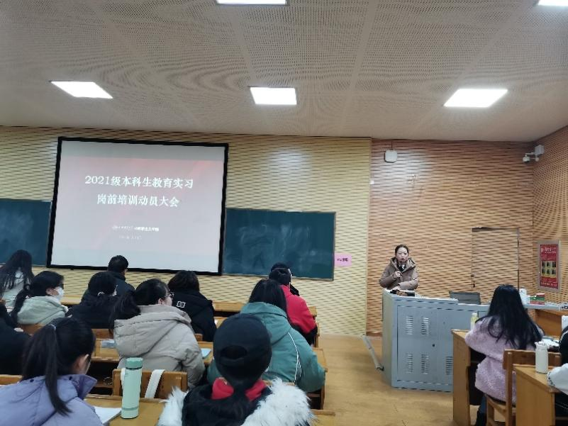 1月10日,院党委书记乔瑞、副院长(主持行政工作)赵改萍、党委副书记杜辉、副院长(挂职)杨海亮、思政系主任贾蕾以及班级辅导员李丽丽、李建蕊出席教育实习岗前动员大会,赵院长在动员中要求同学们提高实习重视程度,在实习中善于学习、勤于思考、提高能力。