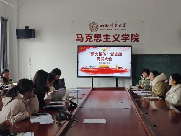 2024年2月29日下午,sunbet申搏官方网站“薪火相传”党支部召开预备党员转正大会和主题党日活动。本次会议采取线上线下相结合的形式进行,由支部书记张玉婷主持,全体党员同志共同参加。