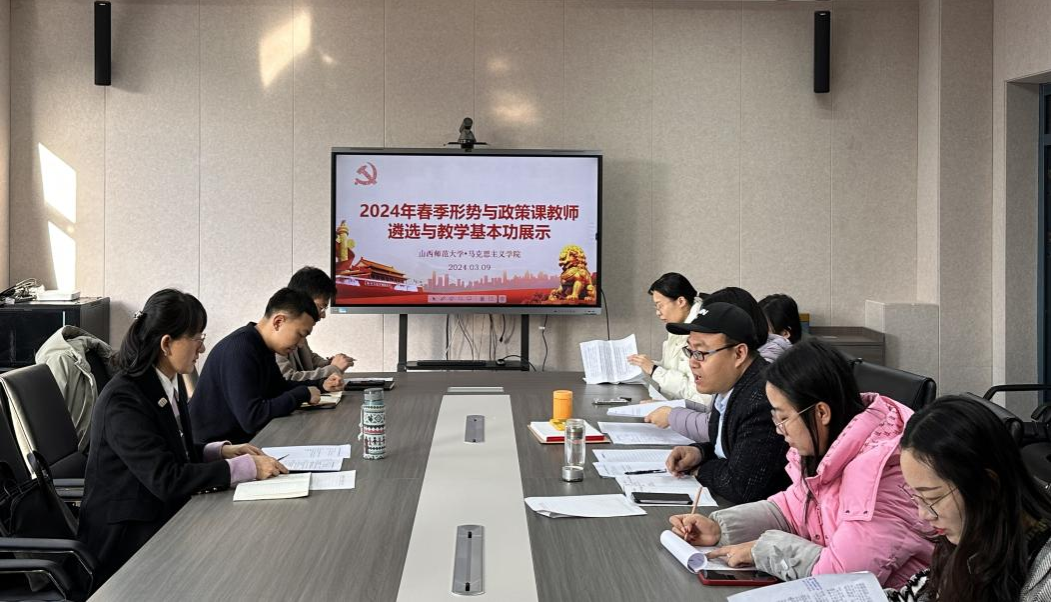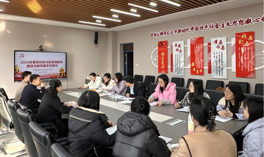 3月9号上午,sunbet申搏官方网站举办2024年春季《形势与政策》课兼职教师遴选与教学基本功展示活动,18名青年教师积极参与,展示活动由形势与政策教研室主任杨源主持。