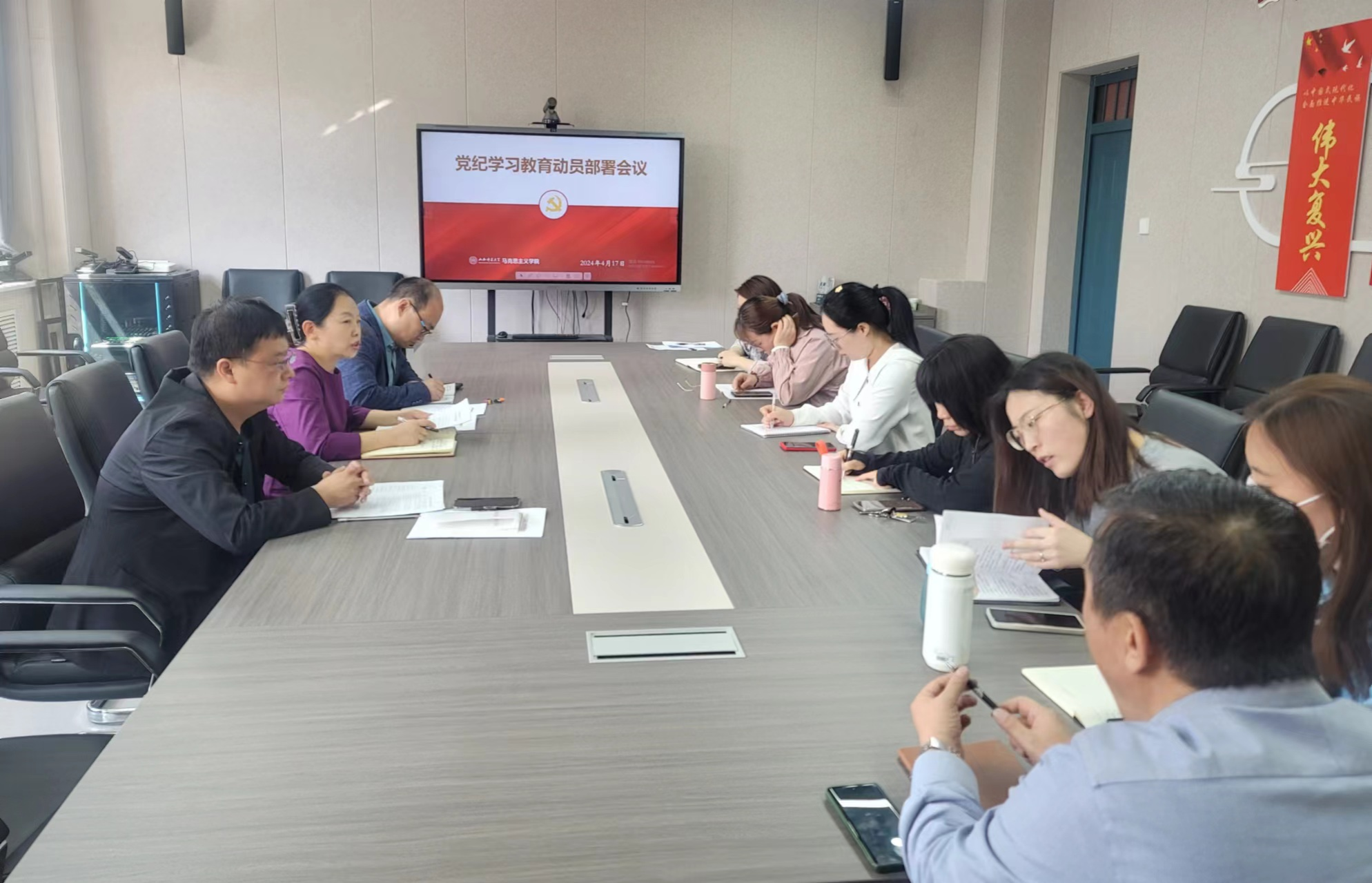 4月17日上午,sunbet申搏官方网站在1506会议室召开党纪学习教育动员部署会议。全体在校党委理论学习中心组成员参加会议,常务副院长(正处级)赵改萍主持会议,并作动员讲话。