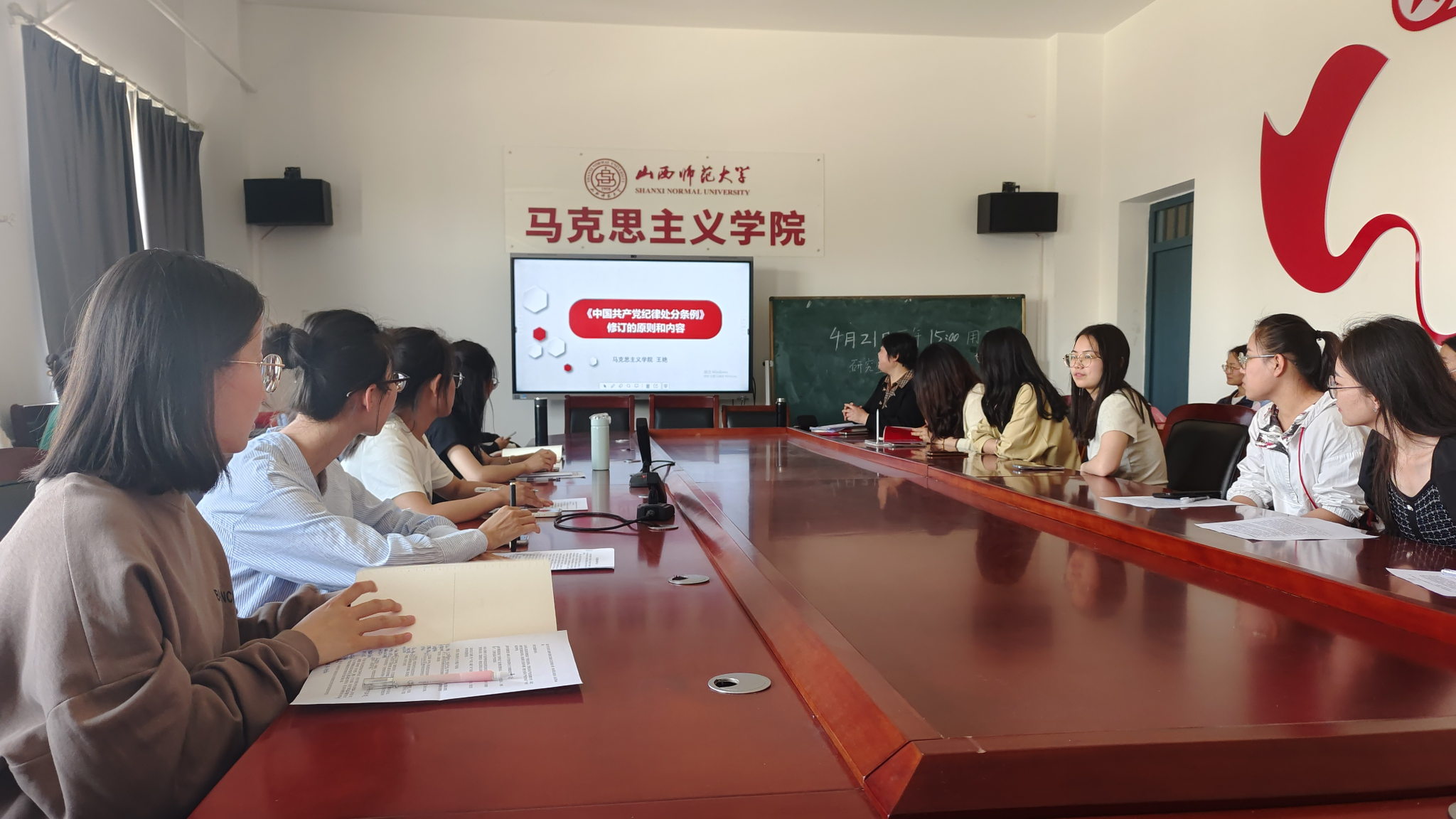 支部书记王艳传达学校、sunbet申搏官方网站党纪学习教育动员部署会议精神,解读院党委《关于开展党纪学习教育的实施方案》的要求和具体安排。随后,以“《中国共产党纪律处分条例》修订的原则和内容”为题,解读党的二十大后《条例》再次修订的原因、原则和特点,并带领大家逐条学习《条例》新修订条款。