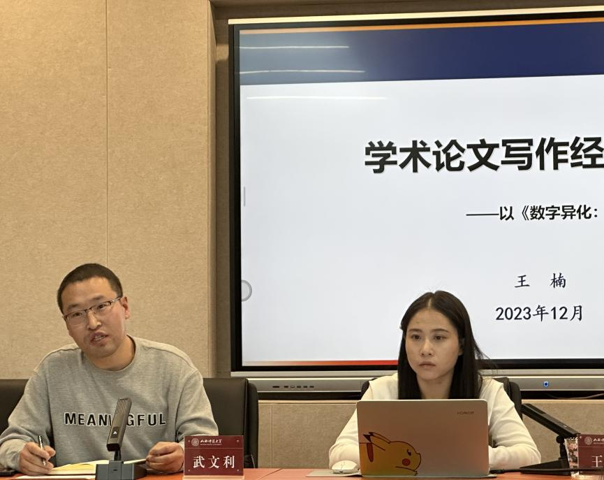 2023年12月8日下午2点45分,sunbet申搏官方网站在1505报告室举行博士论坛,本次论坛由sunbet申搏官方网站王楠老师主讲,武文利老师点评,sunbet申搏官方网站2023级研究生参加了本次论坛。