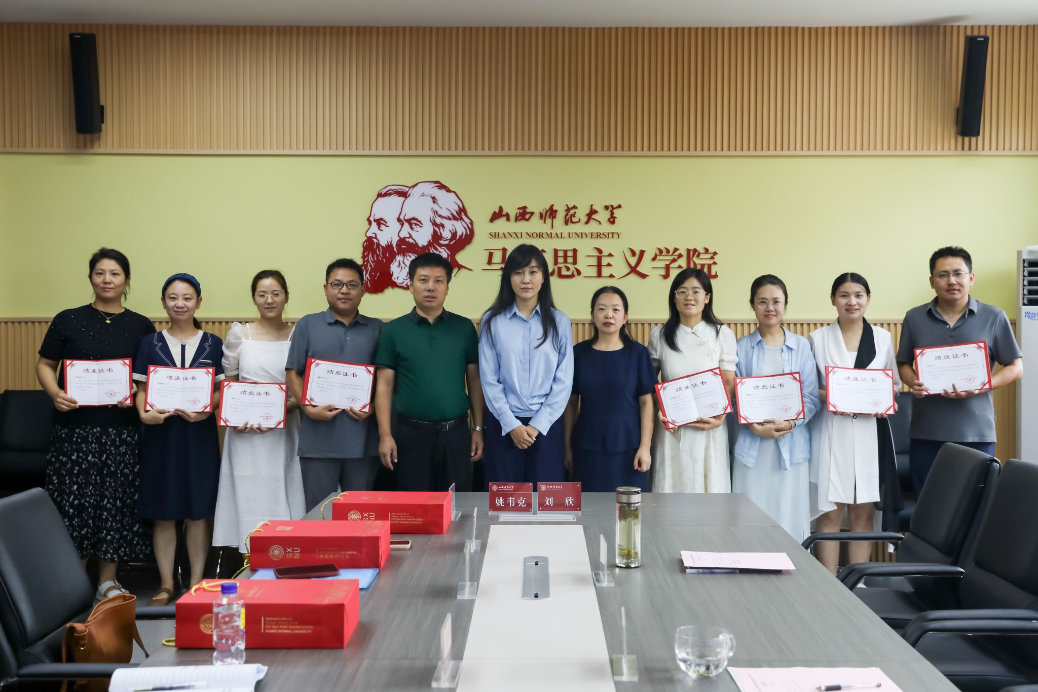 7月1日上午,sunbet申搏官方网站举行山西省高校思政课教师访学研修结业典礼。典礼由院党委书记乔瑞主持,常务副院长赵改萍、副院长吉志强及来自全省8所高校的思政课教师访学研修学员。
