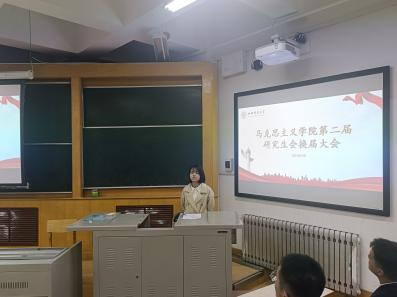 研究生会执行主席杨凯杰就过去一年的研究生会工作开展情况进行回顾与总结,勉励新一届研究生会要增强团队凝聚力,要强化纪律意识以及要明确各部门分工,从而促进研究生会更好的发展。