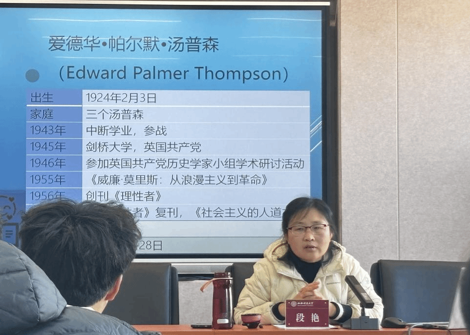 第二,段艳老师深入剖析了汤普森的生平与思想渊源。汤普森深受其父影响,其父在印度生活期间对古典文学的热爱与对自由的追求,深深植根于汤普森的心中,使他自幼对历史与文学怀有浓厚兴趣。同时,兄长弗兰克的影响促使他于1946年加入英国共产党,开启了他的政治与学术生涯。汤普森于1955年发表《威廉·莫里斯:从浪漫主义到革命》,1956年创办《理性者》期刊,1963年完成《英国工人阶级的形成》这一里程碑式著作。在《英国工人阶级的形成》中,他摒弃理论预设,强调从工人的实际生活出发,推动工人阶级运动在实践中发展,这一观点深刻影响了后世的社会历史研究。