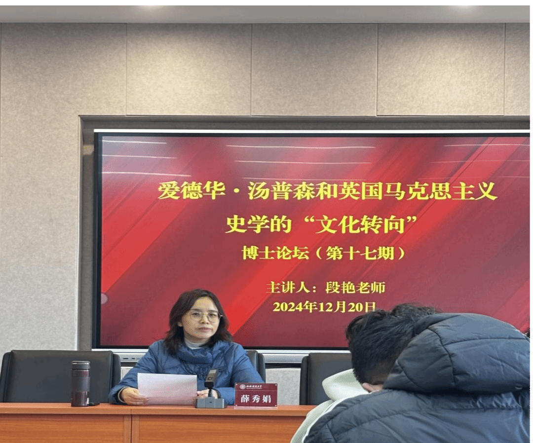 2024年12月20日上午9点,sunbet申搏官方网站在1505学术研讨室举行博士论坛,本次论坛由sunbet申搏官方网站讲师段艳主讲,硕士生导师薛秀娟点评,sunbet申搏官方网站2024级马克思主义理论专业全体研究生参加。