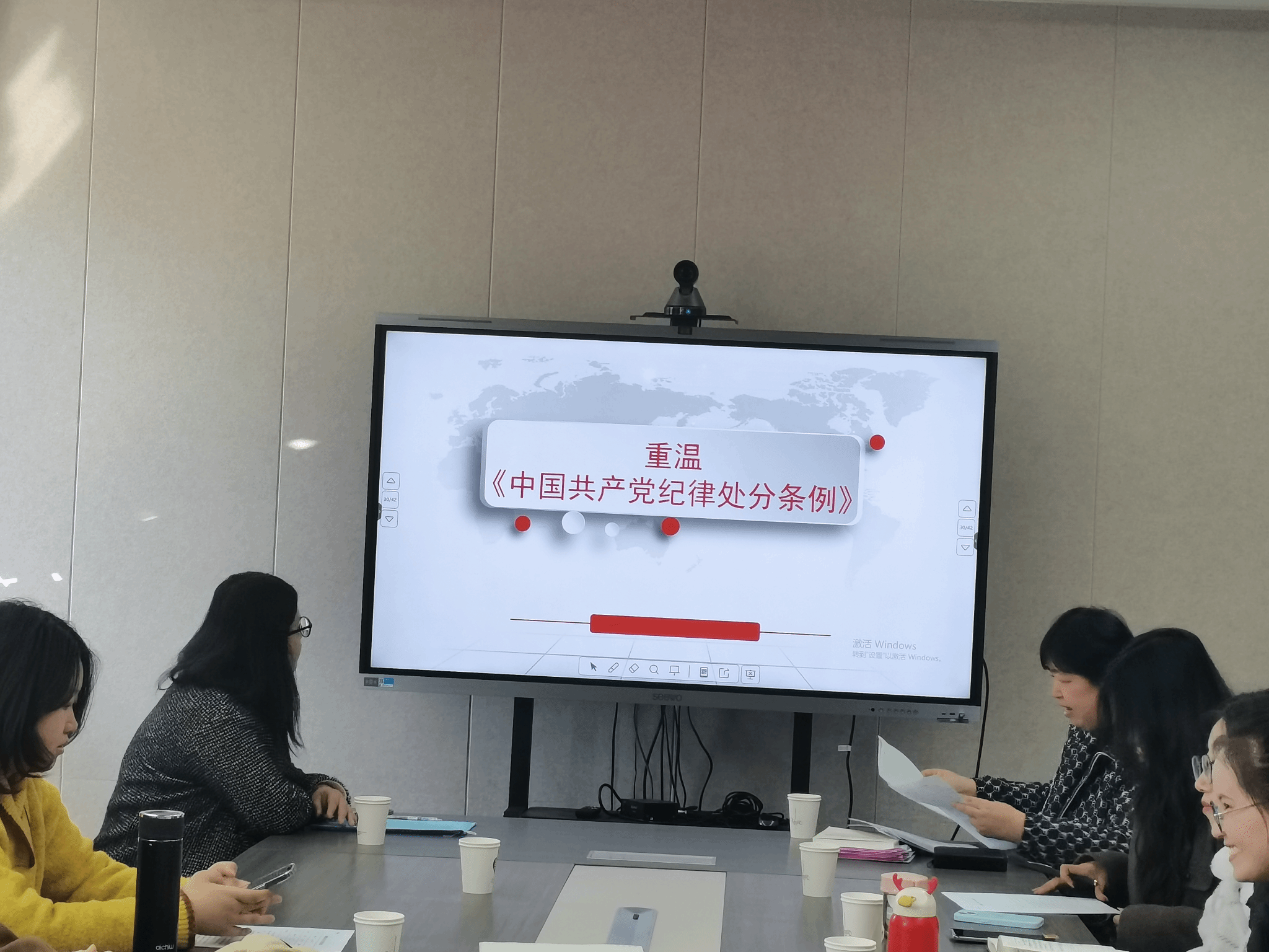 党支部书记王艳从深刻把握新时代党的建设的总体布局、自我革命是党跳出治乱兴衰历史周期率的第二个答案、深入推进党的自我革命以健全全面从严治党体系为有效途径三个方面同支部党员们交流了自己学习《概论》的体会。集体学习中,大家还重温了《中国共产党纪律处分条例》的主要内容,进一步明确了学纪、知纪、明纪、守纪的目标要求。