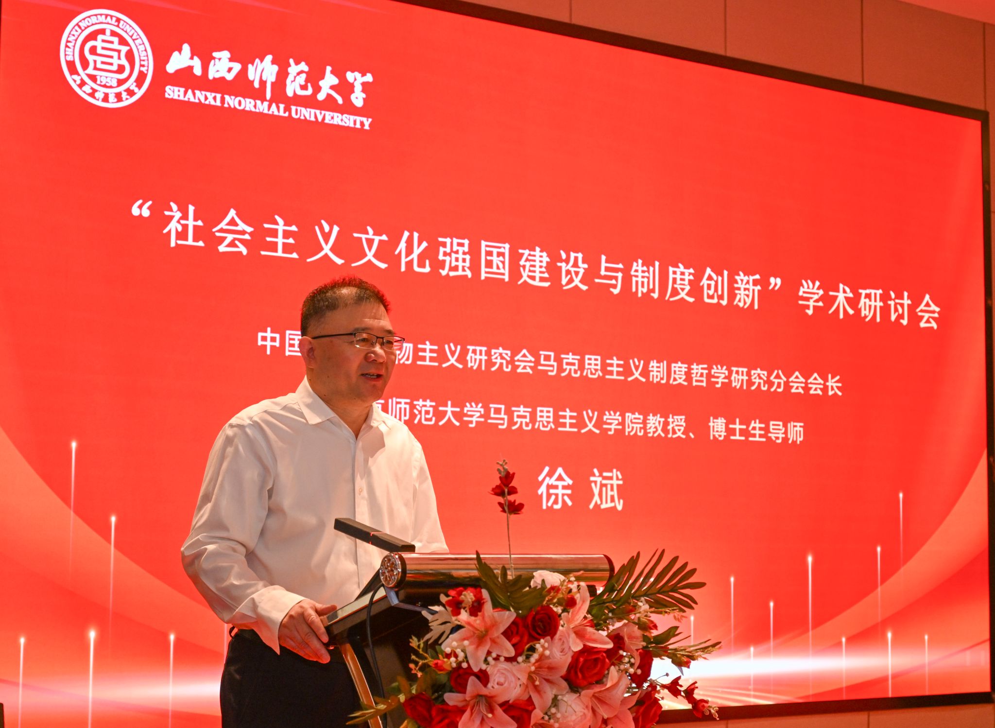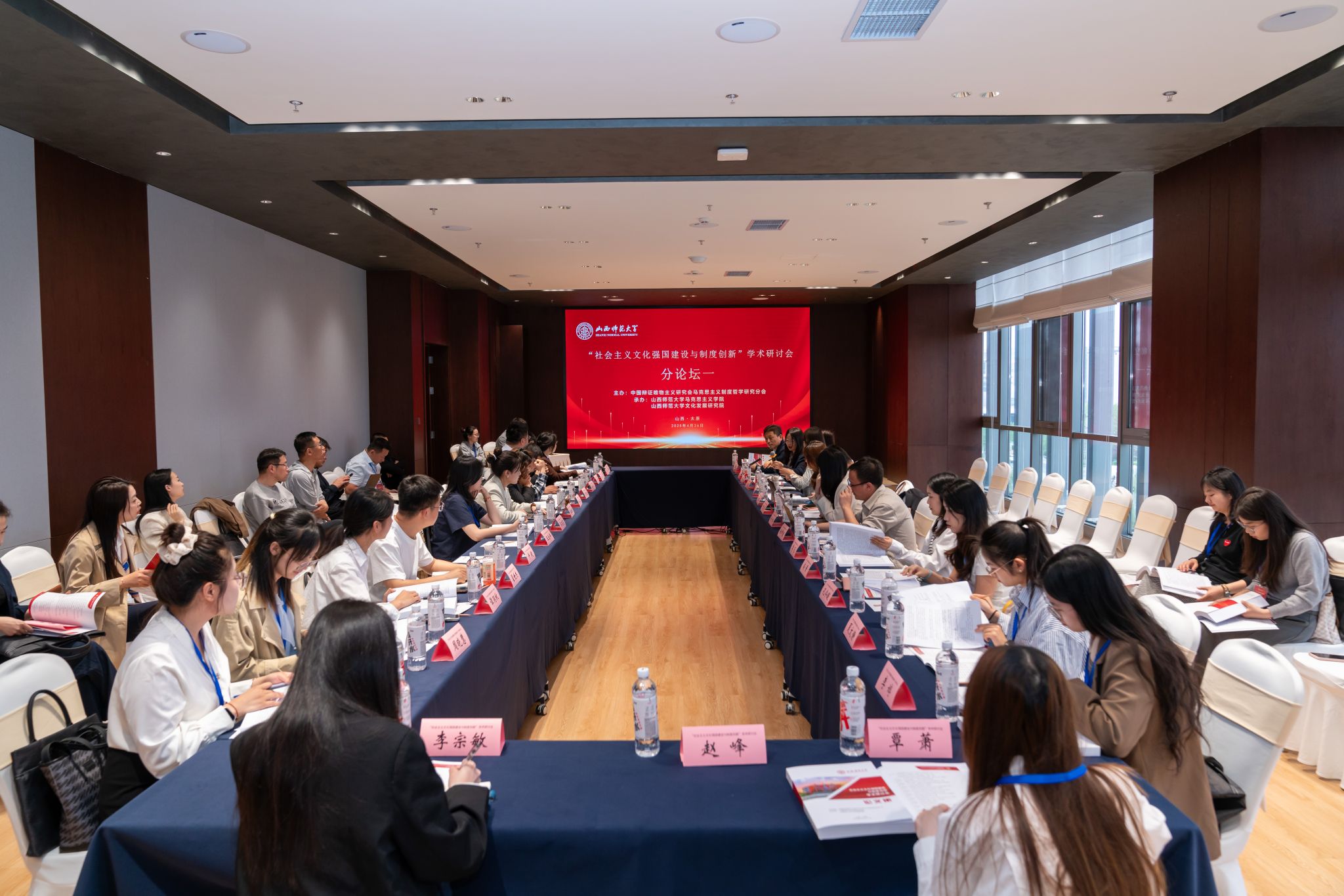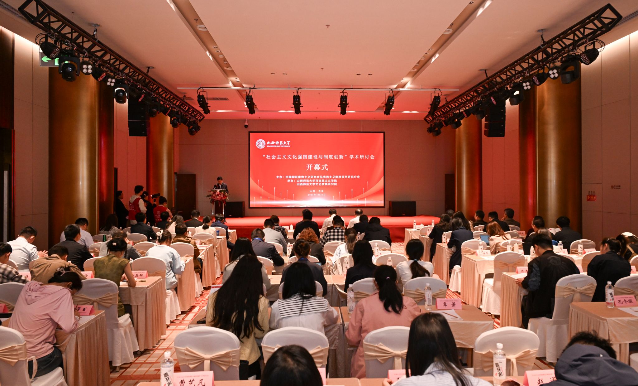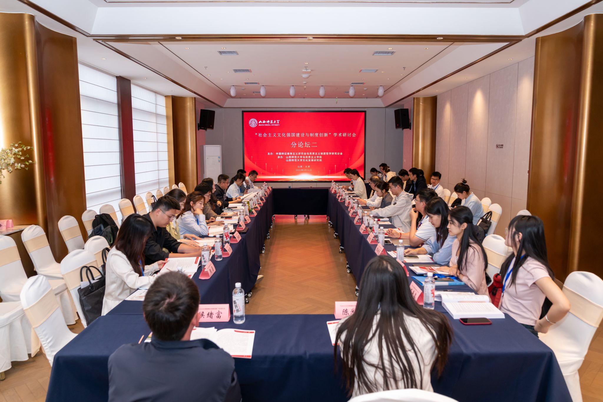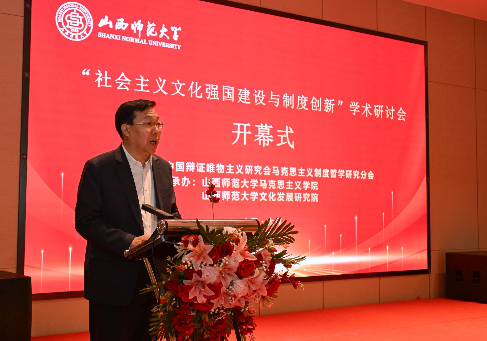4月25日-27日,由中国辩证唯物主义研究会马克思主义制度哲学研究分会主办,我校sunbet申搏官方网站、文化发展研究院承办的“社会主义文化强国建设与制度创新”学术研讨会在太原召开。来自中国社科院、中共中央党校、sunbet申搏官方网站、北京师范大学、西南交通大学、四川大学、东北师范大学、天津师范大学、华南师范大学、石河子大学、北方工业大学、福建省社科院、浙江省委党校等科研院所和高校的100余位专家参会。我校党委副书记王志强致开幕辞,山西省大中小学思政课一体化教研中心负责人、我校马克思主义理论学科带头人贾绘泽教授主持开幕式。