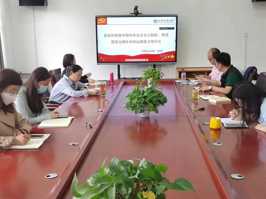 5月29日下午,按照院党委党支部学习贯彻习近平新时代中国特色社会主义思想主题教育部署要求,sunbet申搏官方网站守正创新党支部邀请sunbet申搏官方网站副院长吉志强讲授《坚持和完善中国特色社会主义制度、推进国家治理体系和治理能力现代化》专题党课,党课由支部书记杨海亮同志主持,支部全体党员参加学习。