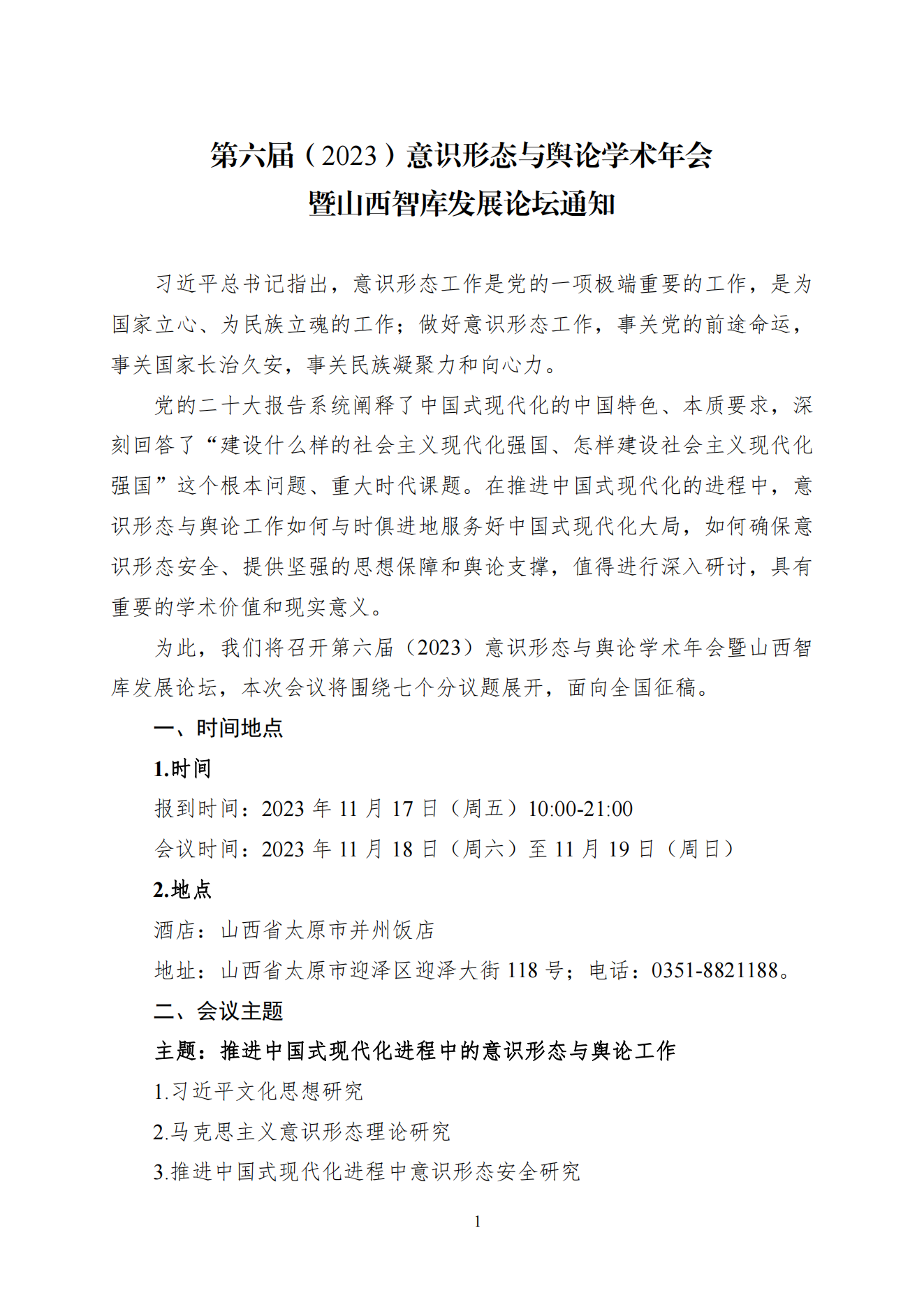 第六届(2023)意识形态与舆论学术年会 暨山西智库发展论坛通知