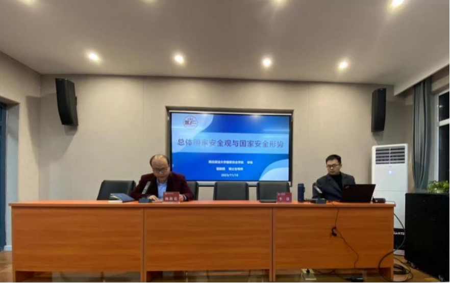 11月18日晚,sunbet申搏官方网站特邀西北政法大学国家安全sunbet申搏官方网站李锋副教授在505报告厅为sunbet申搏官方网站师生作题为“总体国家安全观与国家安全形势”的学术报告,报告由杨海亮副院长主持,sunbet申搏官方网站部分师生聆听了报告。