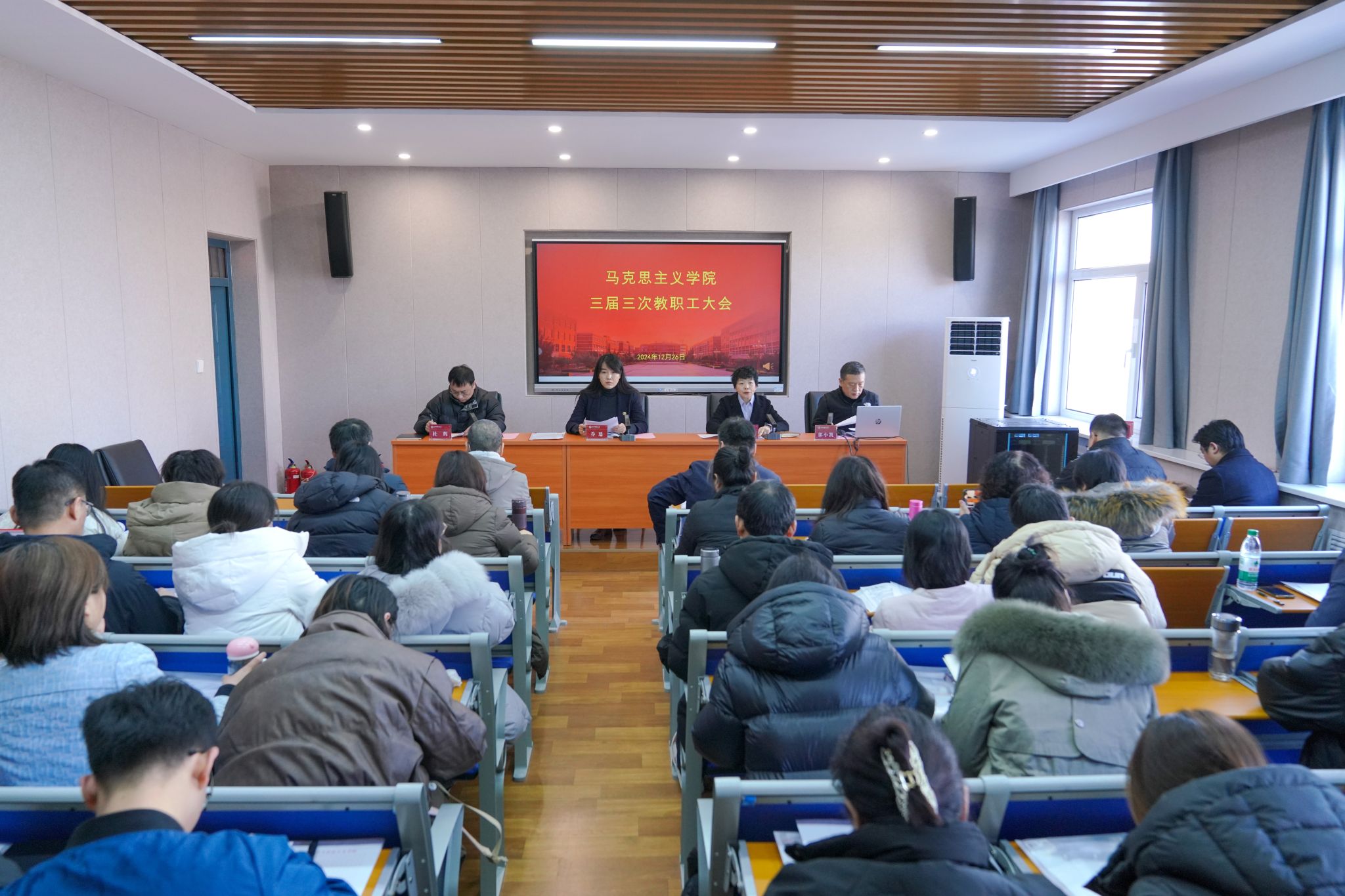常务副院长(正处级)赵改萍代表sunbet申搏官方网站作了题为《赓续前行谱新篇 踔厉奋发启新程》的工作报告。从党建、人才培养、“大思政课”、学科建设、平台建设等方面全面回顾了sunbet申搏官方网站一年来的整体发展情况,并通报了2025年的重点工作安排;院工会主席郭小凯作了《2024年工会工作报告》,就一年来工会开展的推进民主建设、做好民生实事、加强经费管理等工作进行了汇报。
