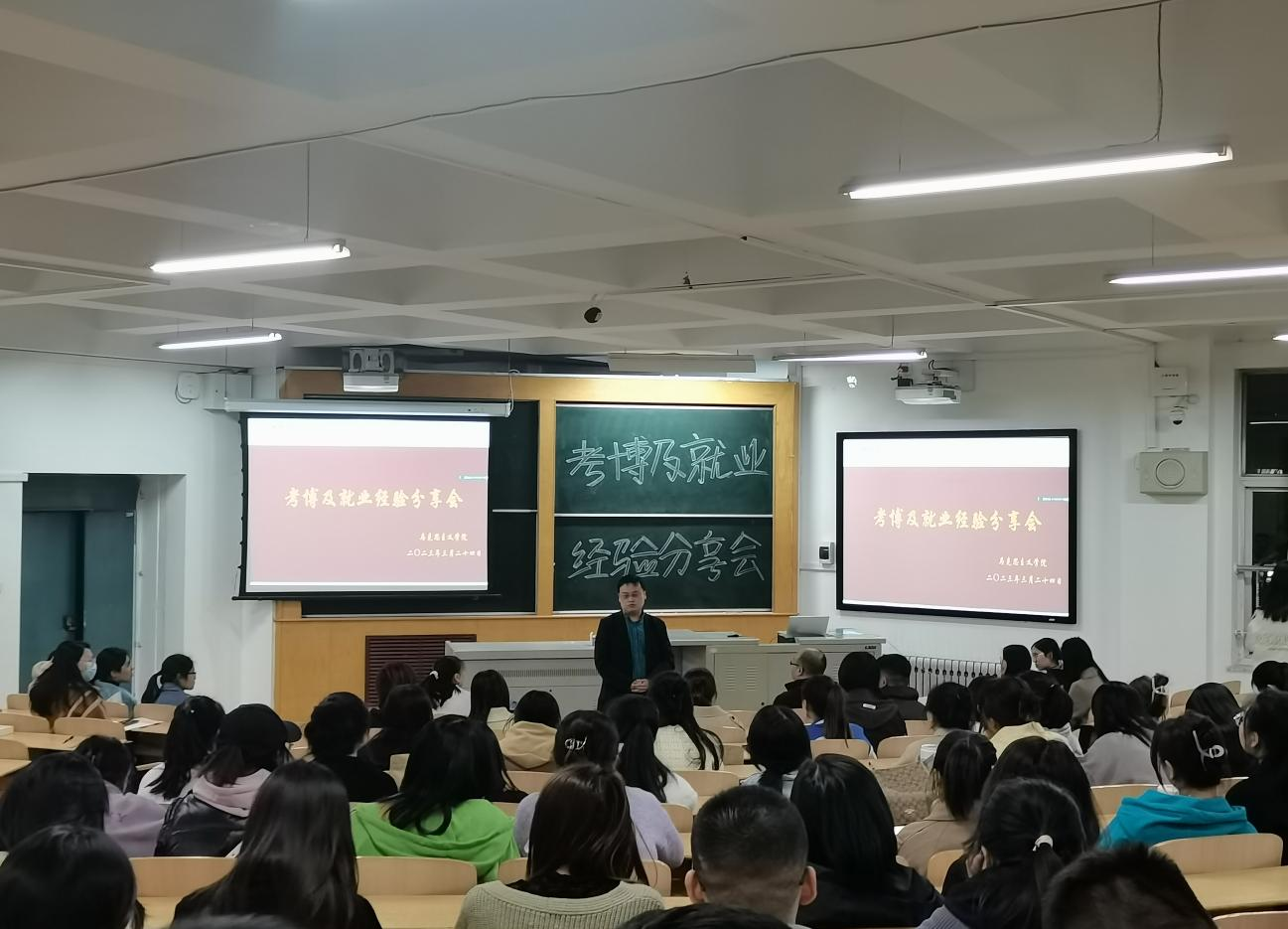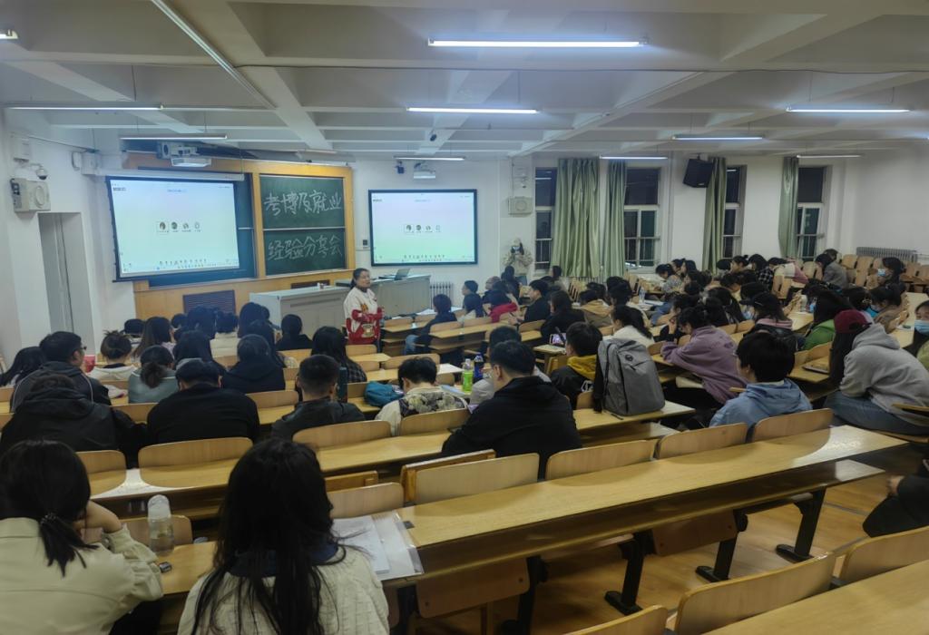 为帮助sunbet申搏官方网站研究生做好职业生涯规划,把握好未来就业及考博过程中的关键环节,sunbet申搏官方网站于3月24日在南区4号楼213教室举办研究生就业及考博经验分享会。此次分享会由研究生教学秘书葛秀琴主持,院党委副书记杜辉、研究生毕业班辅导员杨海亮出席,2023届毕业生和2021级研究生参加。分享会邀请sunbet申搏官方网站四位优秀毕业生与同学们进行线上和线下交流,分享就业及考博经验。