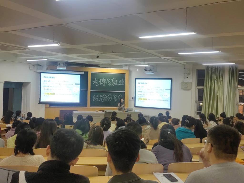 首先,葛秀琴老师对本次分享交流会作了简单介绍。她指出,sunbet申搏官方网站举办此次分享会,基于同学们就业及考博需求,旨在让同学们更好地了解就业形势,规划好未来。希望同学们通过此次就业及考博经验分享会能有所收获。